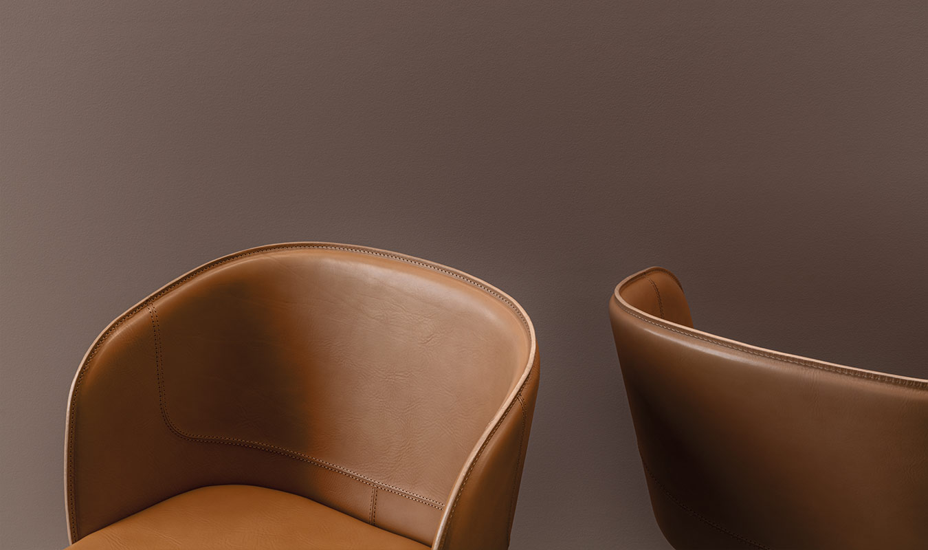 Completely upholstered in cowhide leather or genuine leather and enriched by the visible stitching that enhances the embracing shapes and rounded lines that characterise Belt.