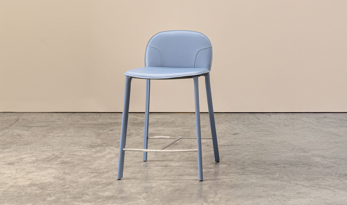 Jabot is a leather stool. Suitable for any use, it can be declined in all the colours of the Airnova collections. The legs are covered with the same leather.