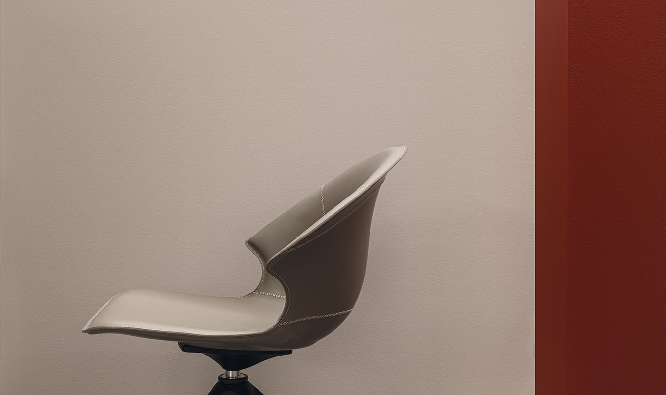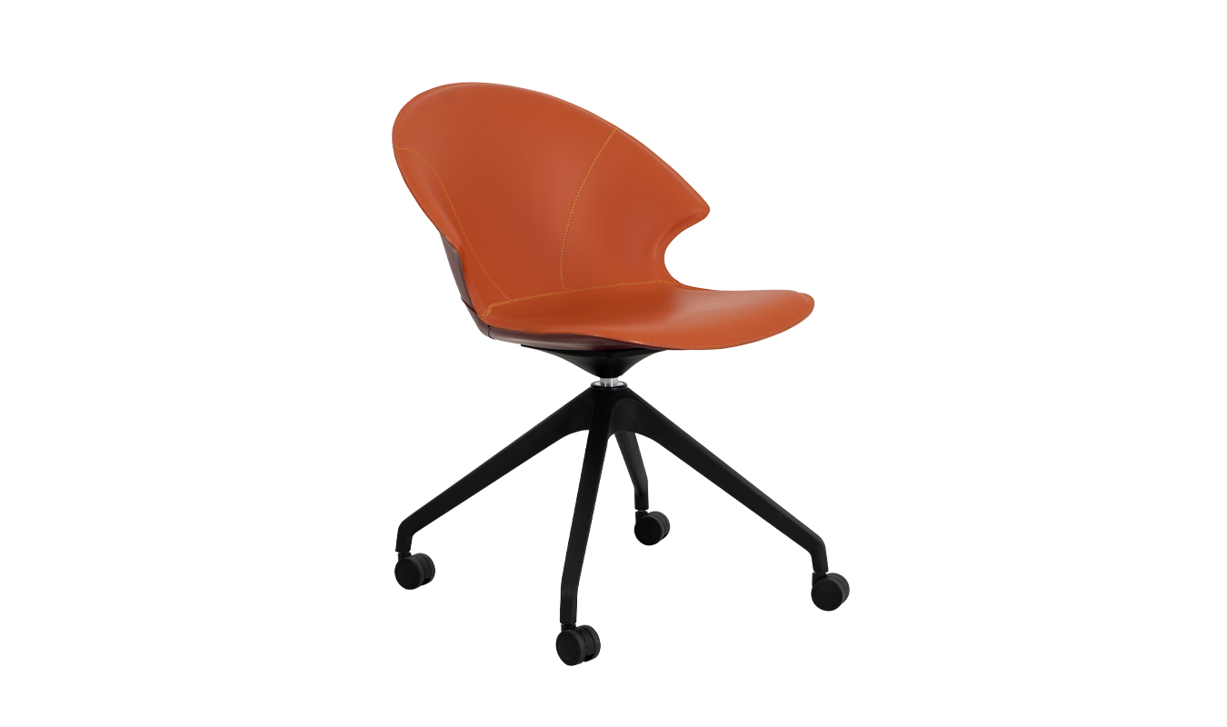 Lolita, swivel with a roller base. Made of leather in all the colours of the Airnova sample book. Suitable for public areas: meeting, bar and office areas, and waiting areas.