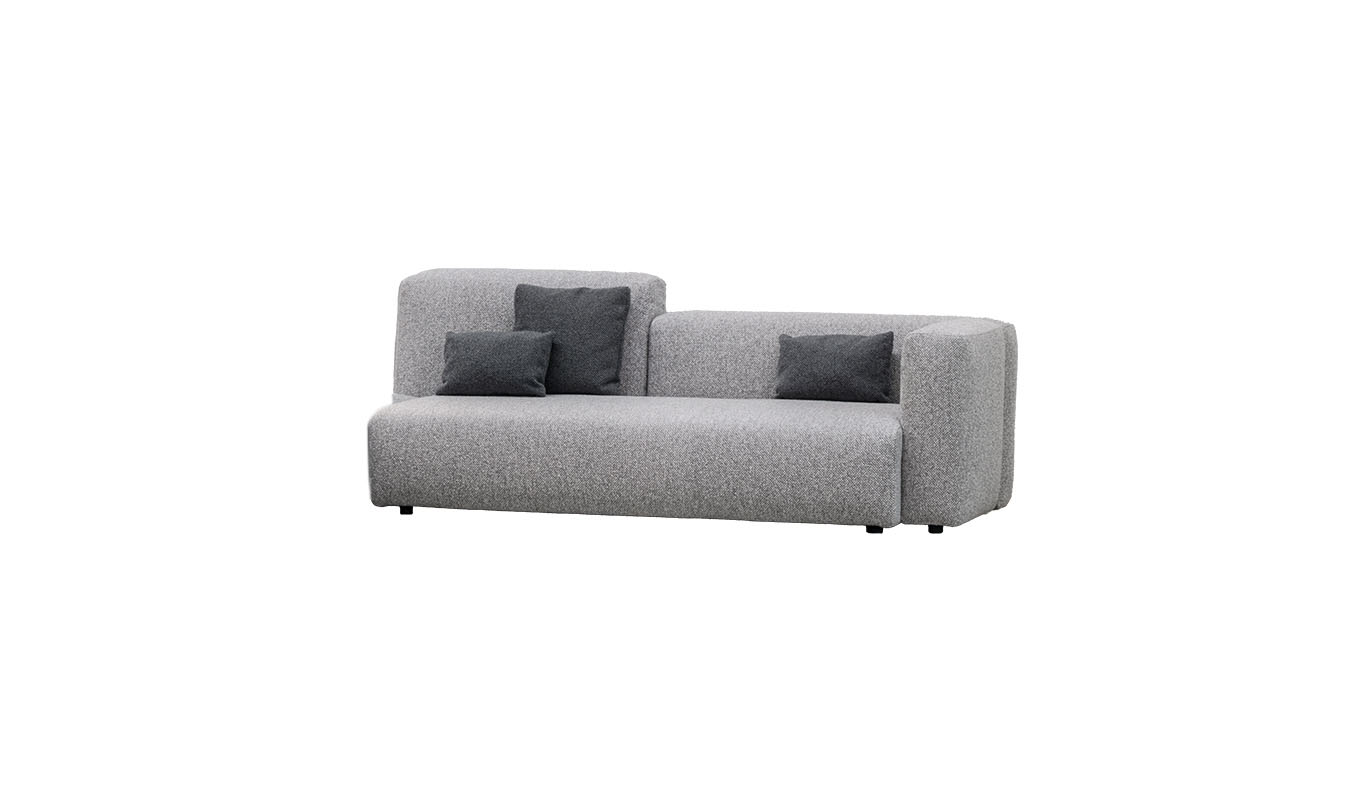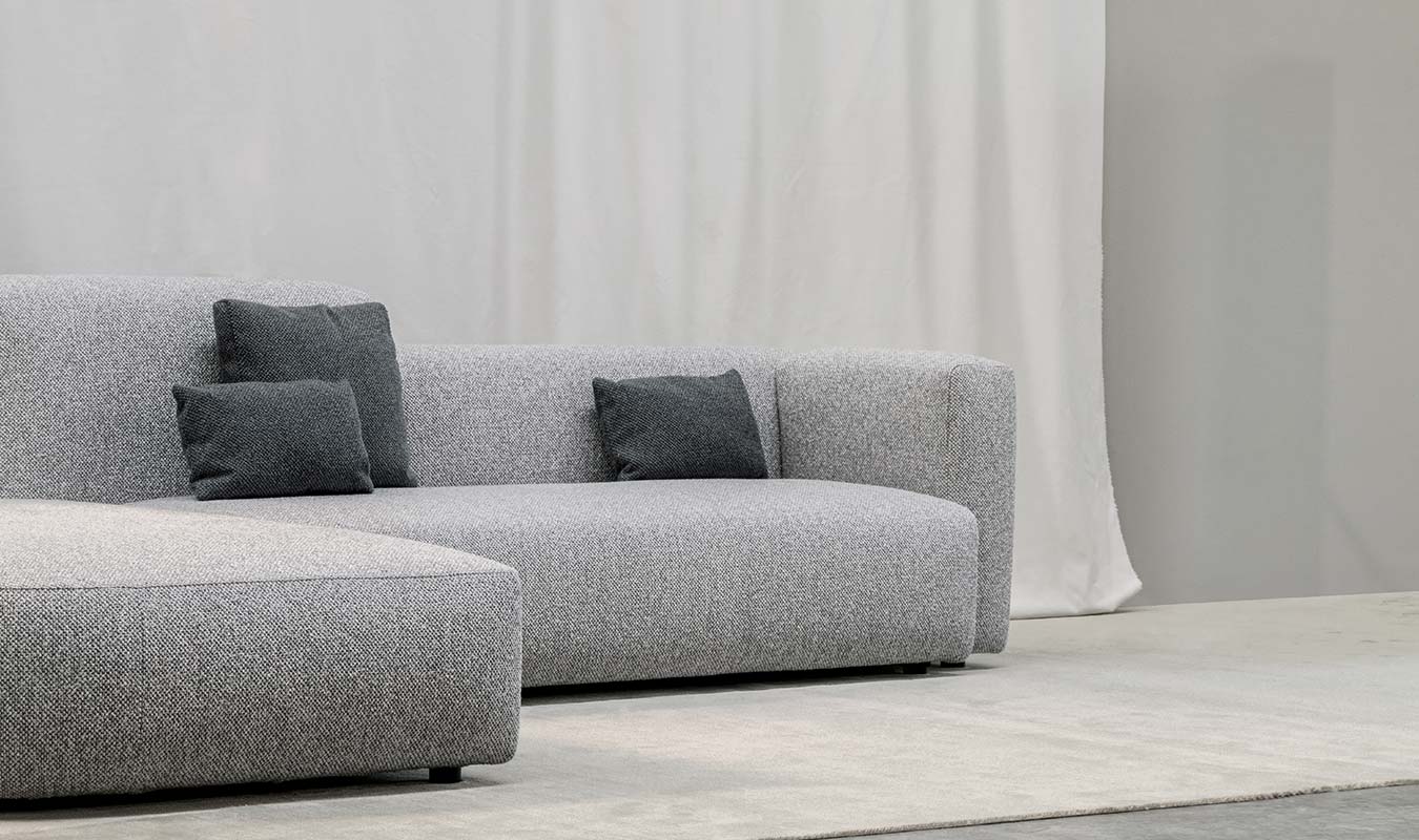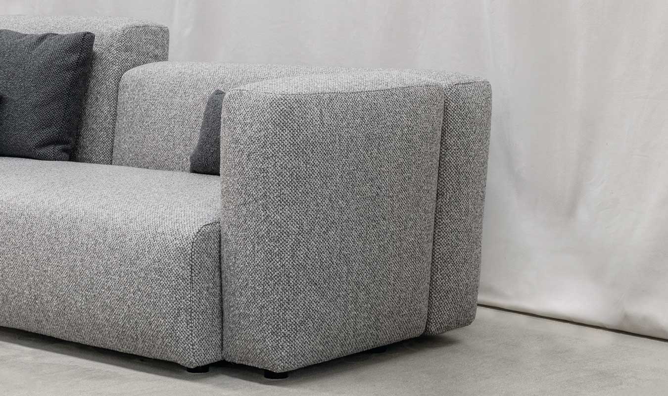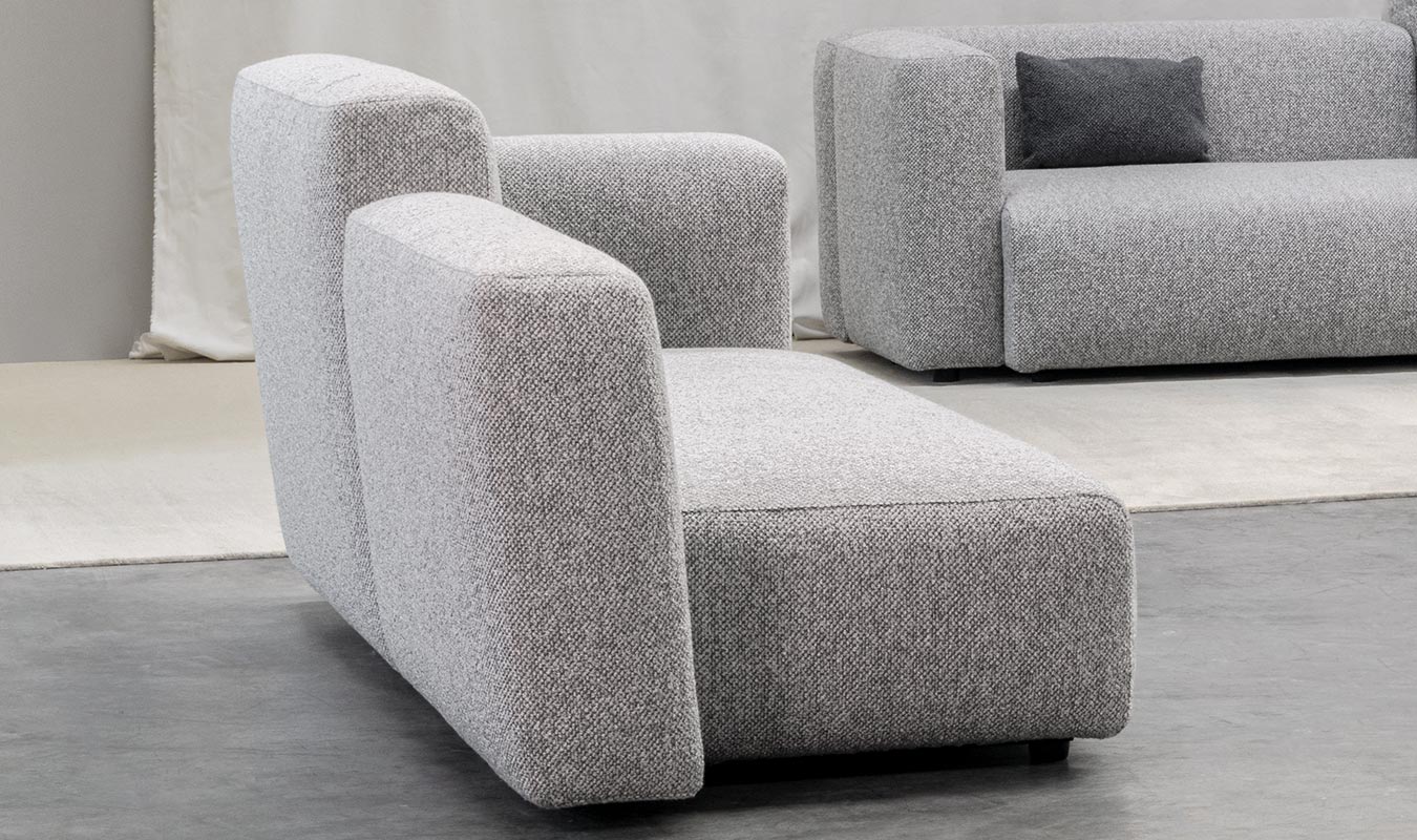 A sofa that combines rectangular geometric shapes with maximum comfort and cosiness thanks to the generous dimensions and the play of heights of the backrests.