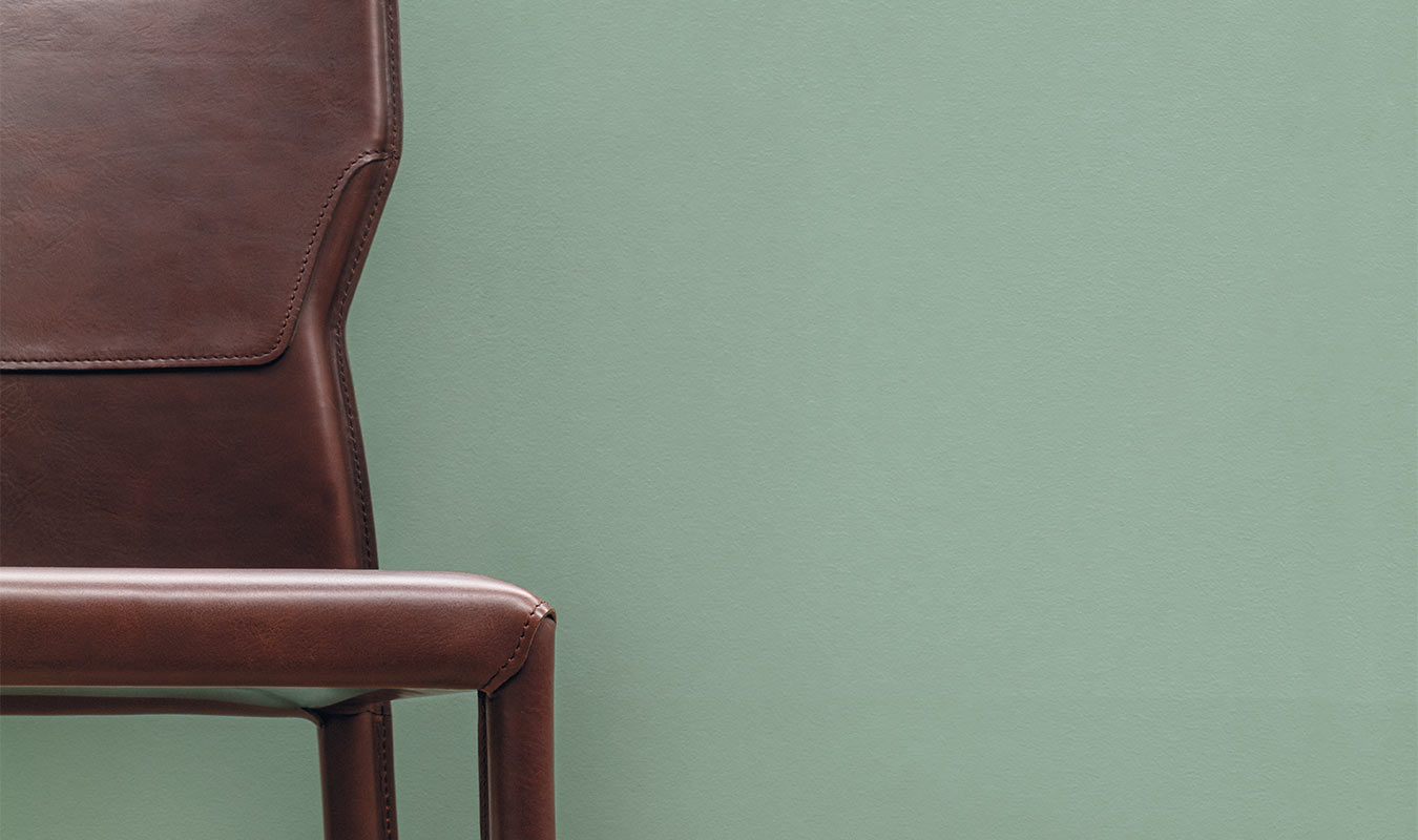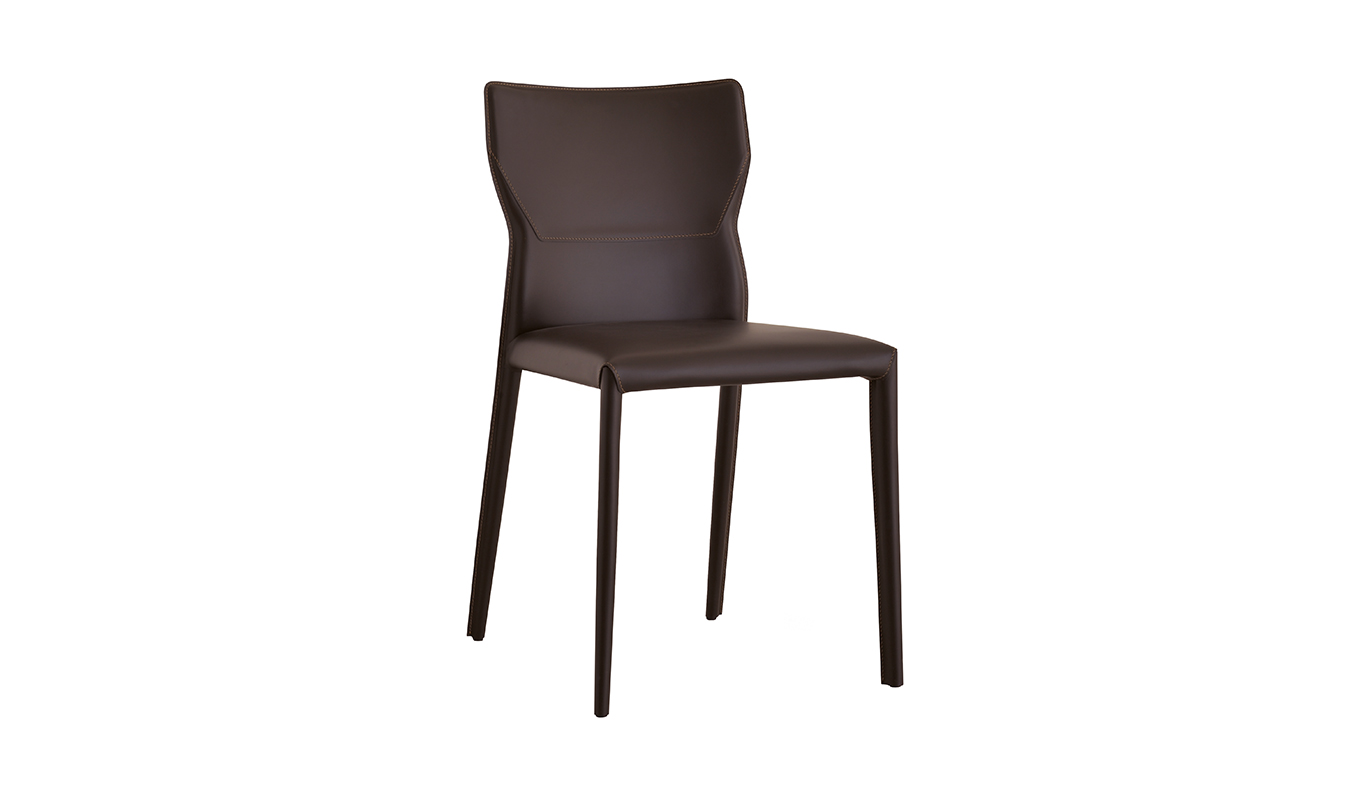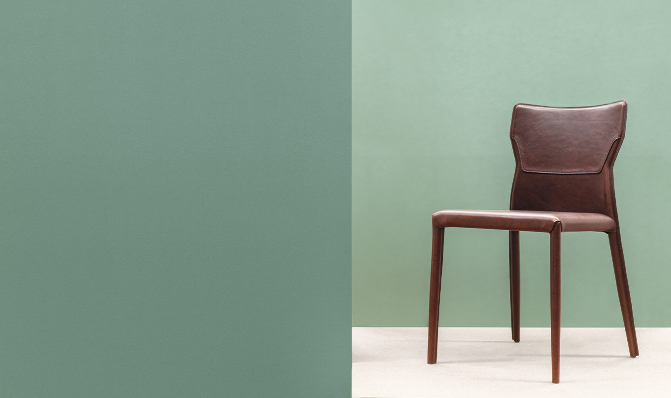 Stile elegante e silhouette ricurva per questa sedia interamente rivestita in cuoio e cuoietto.